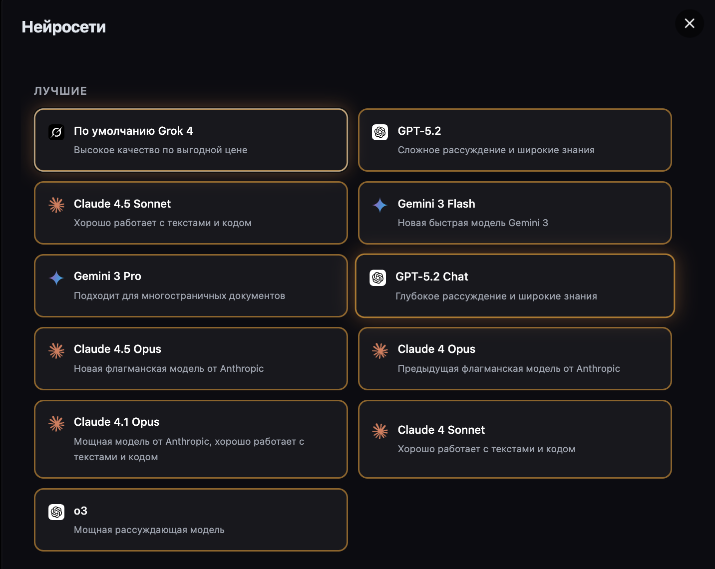 | GPT 5.2 | Флагман 2026 года, максимальная производительность | Средняя | В подписке Нейрочат |